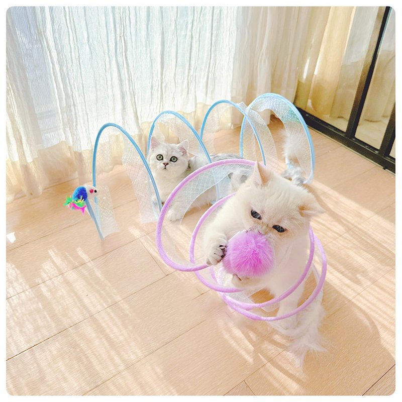 - Interactive and Funny S-style Cat Tunnel: This foldable pet tunnel is a tunnel toy and a cat teasing stick. You can use it to tease your cat, guide your cat to play, pounce, and chase through the cat passage. They can keep healthy through playing and exercising, and also enhance your feelings with your kitten