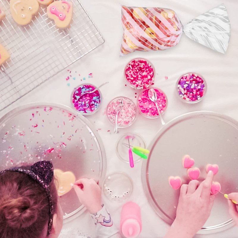 - Size: each cellophane bag is 10.6 x 5.1 inches/27 x 13 cm, which can hold many small things inside, such as cookies, candy, snacks, chocolates, etc; the length of each ribbon is 3.9 inches /10 cm, which is enough to bundle a gift bag and store snacks better
