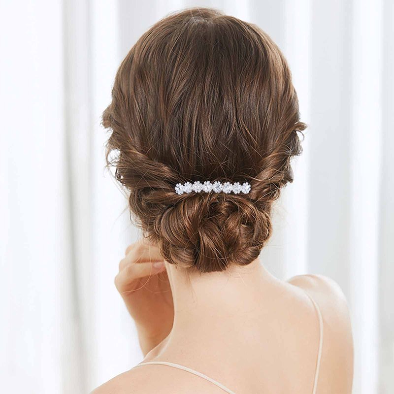 Aneneiceera Bride Wedding Crystal Hair Comb Clip Silver Hair Side Combs Flower Hair Comb Rhinestone Headpieces Bride Hair Piece bridesmaid Hair Accessories for Women and Lady Girls(Silver)