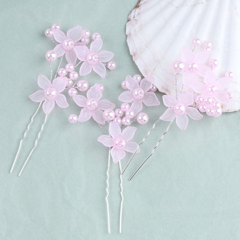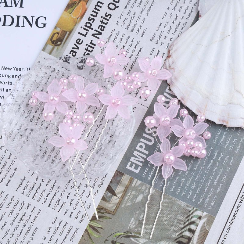 Aneneiceera Pearl Bride Wedding Hair Pins Pink Bead Hair Piece Bridal Flower Headpieces bridesmaid Hair Accessories for Women and Girls (Pack of 3)(Pink)
