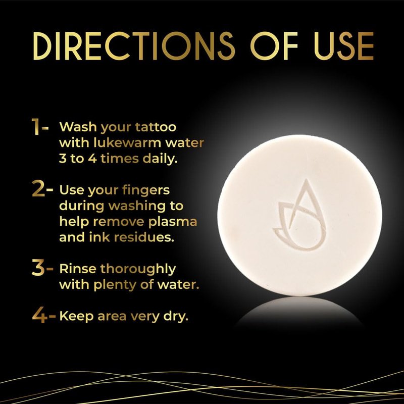 - Directions: Gently wash the area with Angel Soap Allure, rinse thoroughly, and pat dry with a soft towel. Let it air-dry for an hour before applying fragrance-free moisturizer. Keep the tattoo uncovered to allow the skin to breathe, and wash the area 3-4 times a day with Angel Soap Allure to prevent infection and promote healing. If you have concerns or notice irritation, consult your tattoo artist or a healthcare professional promptly.