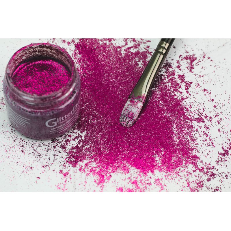 - Glitz without the glue! This shiny, flexible Angelus Glittercoat can be applied straight out of the bottle to give surfaces a glittery finish. Great for anything leather - shoes, handbags, belts, boots, accessories and more. Simply apply in a thin coat for a more subtle shine, or lay down thick coats for a more glittery, eye-catching chrome effect. Bring dynamic shine to any event, outfit or occasion.