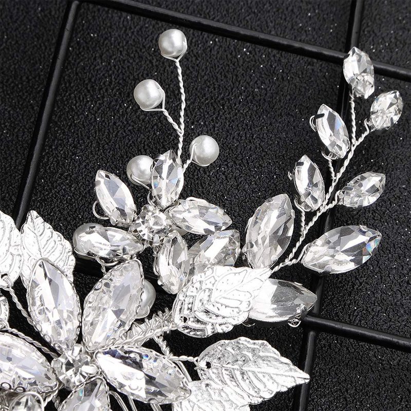Anglacesmade Bridal Hair Comb Crystal and Pearl Side Comb for Wedding Leaf Headpiece with Marquise Bridesmaid Hair Jewelry Prom Party Festival Headdress for Women and Girls (Silver)