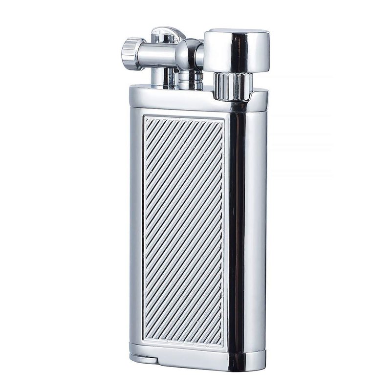 Angled Soft Flame Antique Style Lift Arm Butane Refillable Lighter with Tamper & Pick (Chrome)