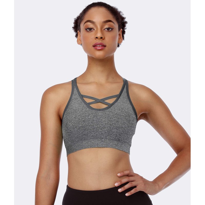 - Light compression sits close to keep everything in place and minimizes bounce. Stretch ribbing around the rib cage enhances durability and comfortable support. Perfect for medium-level activity, any exercise, and gym activity like Elliptical trainer, Rowing machine, Anaerobic strength training, Zumba, or Yoga. This sports bra will serve your lifestyle's needs.