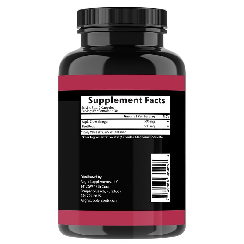 Angry Supplements Apple Cider Vinegar + Beet Root Powder Capsules, Pure ACV Beetroot 1000mg per Serving, Nitric Oxide Booster & Digestive Health for Men and Women 60ct, 2 Pack (120ct Total)