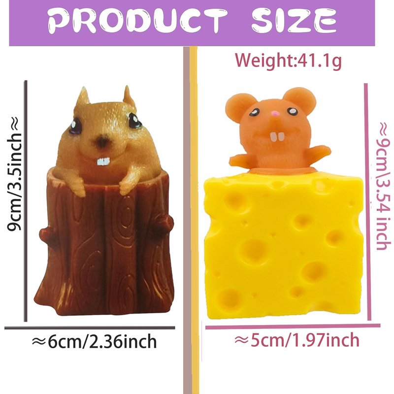 - 【Easy to Use】 Autism sensory toys are extremely soft and easy to squeeze, pulled, stretched and smashed. When you squeeze hard, the evil little mouse will come out of the cheese! After loosening the cheese, the mouse will return to the cheese and this fidget toys stress ball can be reused.