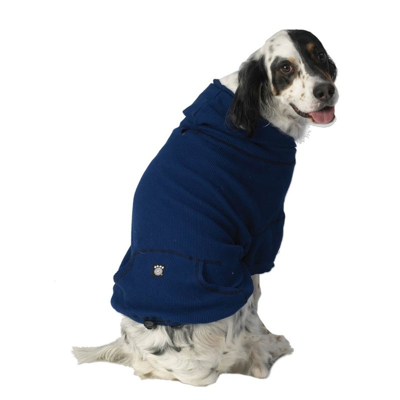 This fur-trimmed hoodie from Petrageous has a comfy and cozy fit! Waffle weave knit hoodie Comfy, loose fit Faux fur trim on hood with draw-cord hem Leash hole for convenience! Why We Love It: This waffle-weave knit hoodie is the perfect fall and winter staple. Features a classic royal blue color, a generous and cozy fit, kangaroo pockets, a leash hole, and a draw-cord hem, this hoodie is as convenient as it is cute. Made of a polyester/cotton blend. Pullover style.