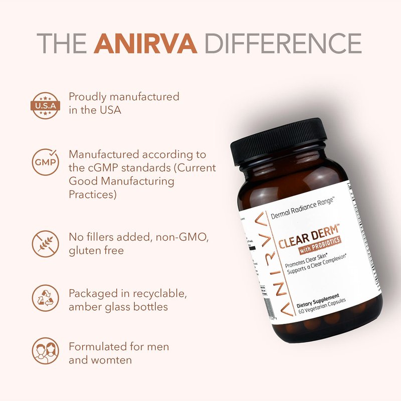 ANIRVA 2-Pack Acne Pills with Zinc for Adults, Acne Pill for Hormonal Acne, Zinc Pills for Acne Treatment, Probiotics for Acne, Zinc Supplements for Adult Acne Clear Derm with Probiotics