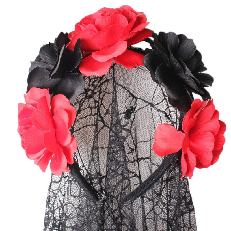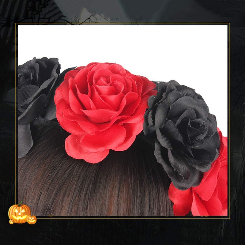- EASY TO MATCH YOUR HALLOWEEN COSTUME: Adult black lace veil on headband with attached dark red and black roses, Perfect fancy dress Halloween accessory. Combine with sugar skull face tattoo or other Halloween/Day of the dead costume accessory will make it more perfect