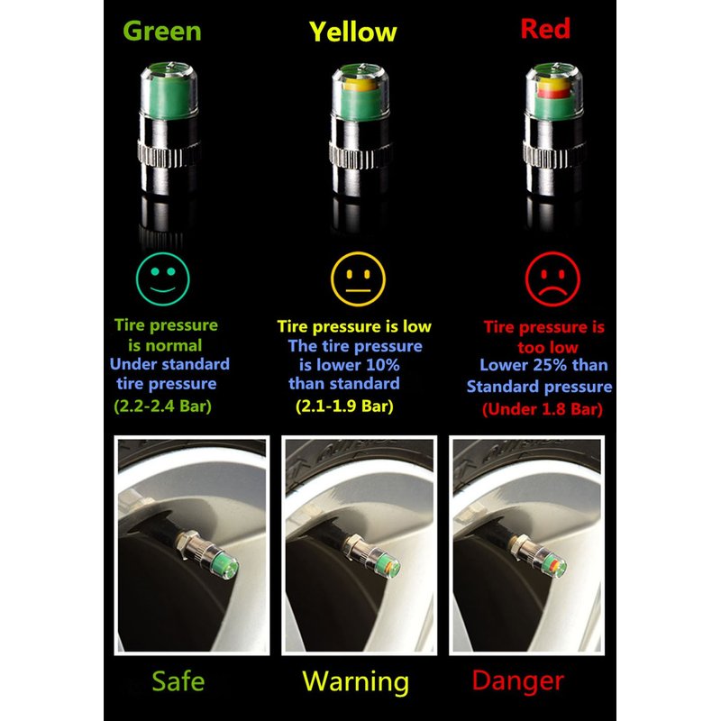 - Car tire pressure monitor valve caps help to avoid premature tire wear or blowouts from under-inflated tires,increases fuel efficiency, safety and control, extends tire life
