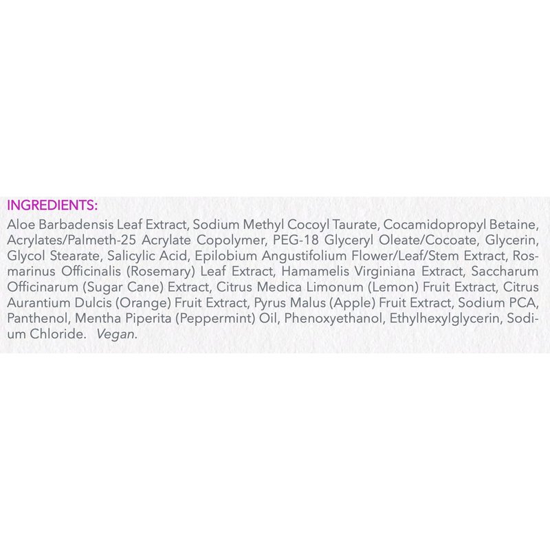 - 3 Main All Natural Ingredients: Salicylic Acid = Strong Exfoliation Sugar Cane (AHA) = Exfoliates Rosemary = Natural Astringen