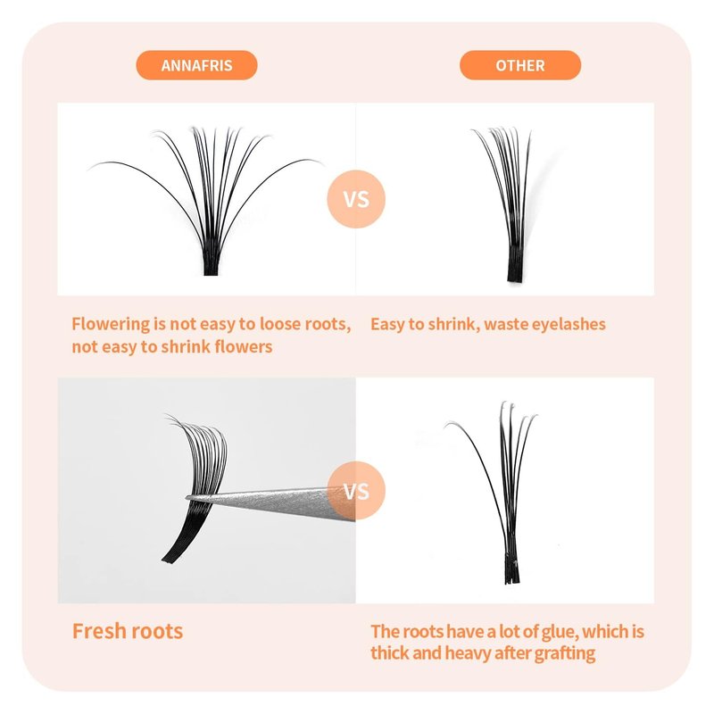 9 major advantages 1: ANNAFRIS Lashes are Korea imported,Specially researched Synthetic PBT Fiber materials: light, natural and soft. 2: 80°C high temperature resistance. 3: Can be easily removed from the tape. 4: The shape remains unchanged for more than 1 year. 5: The high-quality wallpaper avoids any residue on the eyelash curler, and the super glue can be recycled. 6: Sturdy packaging avoids any damage during transportation. 7: We are a manufacturer, we provide fast departure at the best price. 8: Our eyelashes are authorized by MSDS and SDS, completely handmade, no animal testing. 9: Bulk price and customized labels can be negotiated.