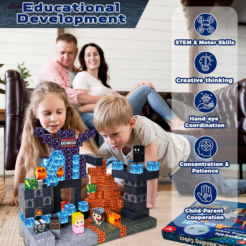 - 【Build Your Own Dark Mechanical Guardian Castle】Get ready to build a castle with this new magnetic cube set simulation "Magnetic Dark Mechanical Guardian Castle" Imagine the amazing stories that could happen in Magnetic Dark Mechanical Guardian Castle and start your castle adventure! Magnetic blocks allow your child to travel to a wonderful castle or a fantasy of possibilities! From simple to challenging builds, experience the fun of role-playing and dress-up toys! Let kids’ imaginations run wild with our magnetic open-ended playset!