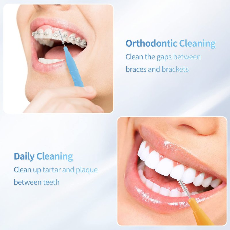 - ✔ Compact & Portable:The handle of the interdental brush designed with a non-slip strip provides a comfortable grip, easy control, our braces cleaner is easy to store and carry around. Use it at home, office, or while traveling for added convenience.