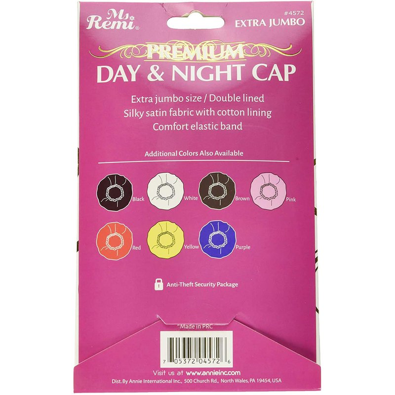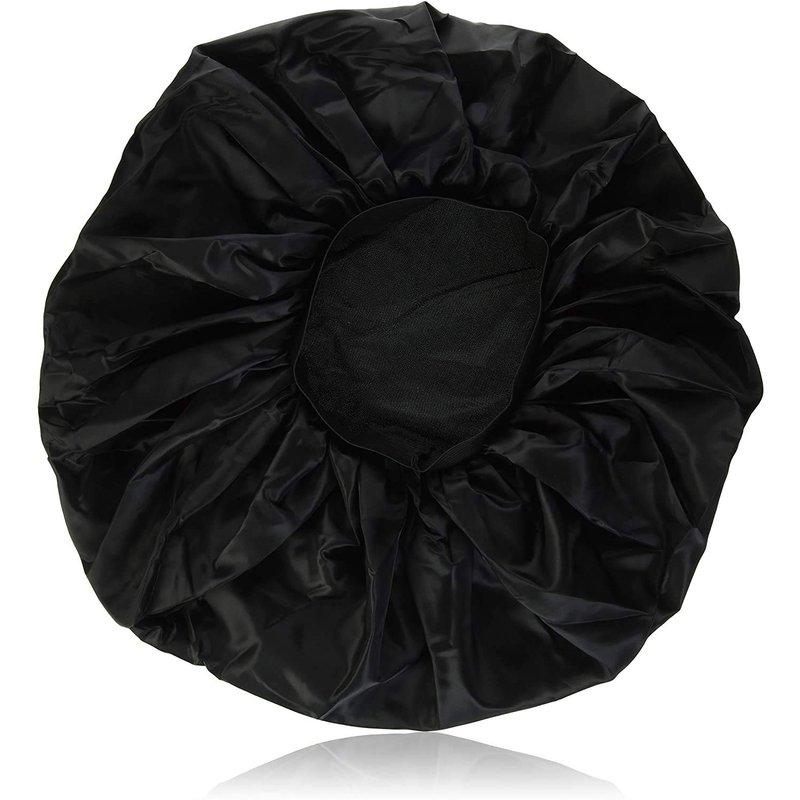 - PRODUCT SPECIFICATIONS: Comes with 1 black extra-jumbo-sized double-layered satin day and night cap with an elastic band to keep it in place.