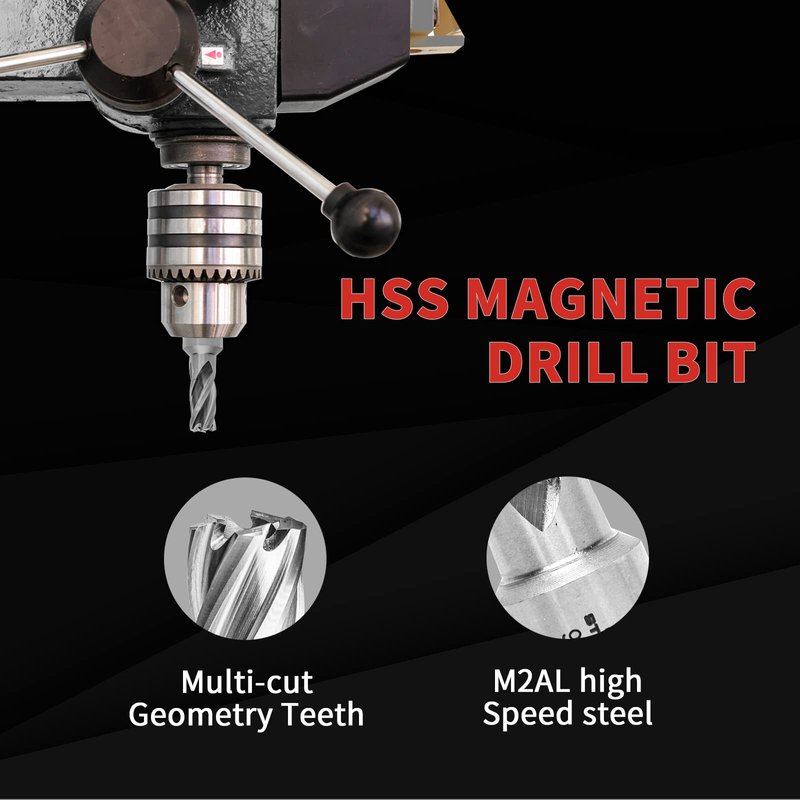 - CNC-machined high precision annular drill bit set with 3/4 inch Weldon shank (with 2 flats) for secure clamping and edge finish designed for smooth, reamed, burr-free edges of drilled holes. Use a firm steady pressure throughout the cut for best results