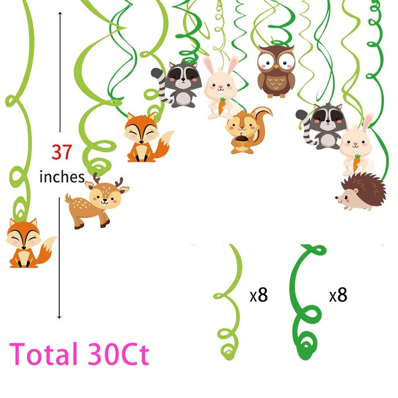 - 30Ct Double Printed Woodland Hanging Swirl Decorations Hard Card,30Ct Woodland Decorations Hanging Swirl Length 36-37 Inches,Easy to Hang and Take Down,Can Be Used Many Times in Many Different Party Occasion.Meet Your Party on This Year During Woodland Theme with This Accessory Set.