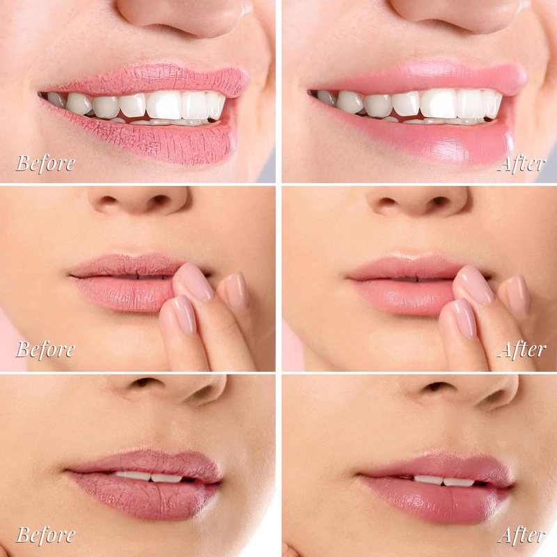 - Moisturizing & Softening Ingredients-- Shea & Cocoa Butter to moisturize and soften dry, chapped, cracked lips. Ceramide, Hyaluronic Acid & Collagen provide intense hydration to reduce lip wrinkles and fine lines. Bakuchiol, Jojoba & Grape Seed Oil & protect lips from environmental damage and help you achieve younger lips.