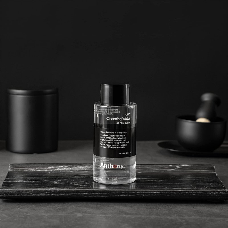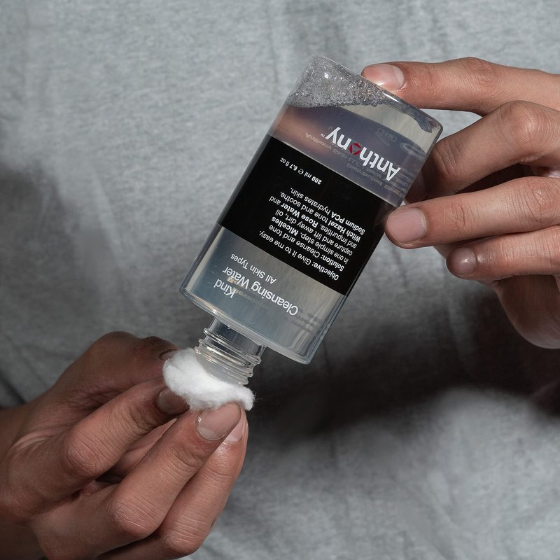 They should be gazing deeply into your eyes, not your pores. Fix it with Anthony Kind Cleansing Water, a gentle and highly effective way to remove stubborn dirt and oil tighten up those pores so your skin looks smooth and firm, even up close. The ingredients that make the magic happen are micelles and witch hazel. Micelles are compounds that instantly soak up dirt and oil, pulling the impurities out of your skin. Then witch hazel comes in and gently tightens those newly polished pores. It not only makes your skin look better, it prevents acne by keeping skin clean and healthy. This face cleanser and toner does one more amazing thing— it hydrates. An extra boost of sodium PCA (the skin’s natural moisture-grabbing miracle) actually pulls humidity from the air and gives it to thirsty skin. To use, simply wipe on and let dry. No rinsing needed. This makes it a great option for work, the gym, travel, and outdoor sports and recreation. Women also love it to tighten pores and get a clean, firm base under makeup. Free of harmful parabens, phthalates, GMOs, DEA, triclosan, and gluten. Allergy and dermatologist tested safe for all skin types. When you purchase our products, you’re also helping the environment and animals. We’re cruelty-free, packaging is 100% recyclable, and we continually move towards renewable and sustainable resources. Look good, feel good, do good.