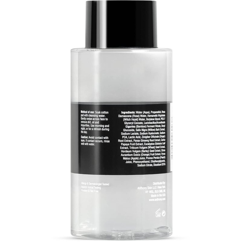 Anthony Witch Hazel Toner for Face Kind Cleansing Water – Contains Rose Water to Tone & Soothe, Sodium PCA to Hydrate Skin, and Micelles Removes Excess Oil and Impurities, 6.7 Fl Oz