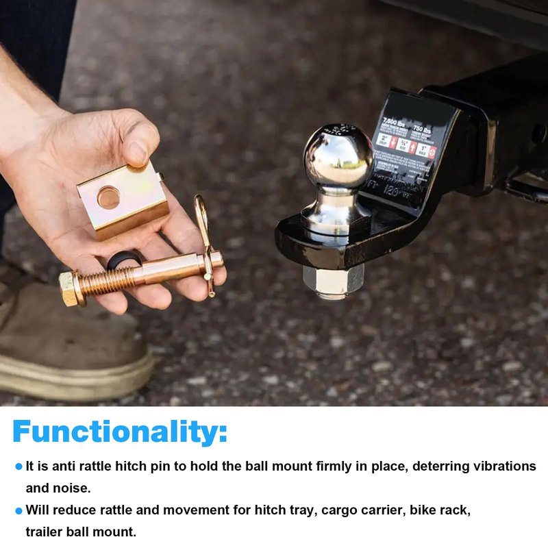 - 【Functionality】It is anti rattle hitch pin to hold the ball mount firmly in place, deterring vibrations and noise. enjoy a smoother, quieter ride while towing your trailer with this anti-rattle hitch pin. This anti rattle hitch pin will reduce rattle and movement for hitch tray, cargo carrier, bike rack, trailer ball mount.