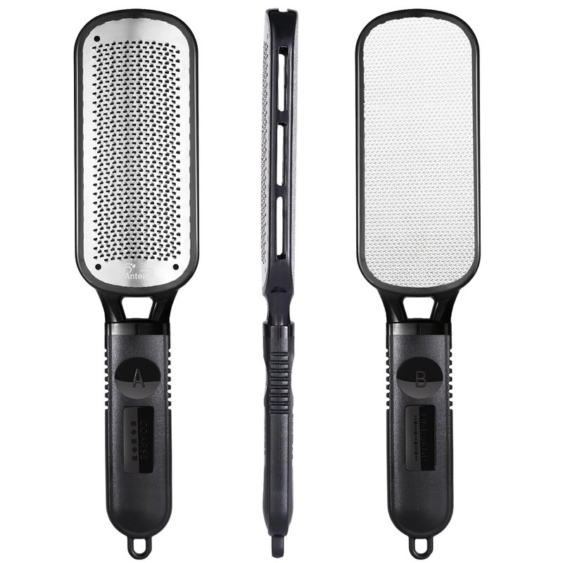 Antonki Foot File for Dead Skin, Double Sided Callus Remover for Feet, Metal Foot Scrubber for Cracked Heel, Professional Foot Scraper Rasp Pedicure Tool to Remove Hard Skin - 2 in 1 Foot File