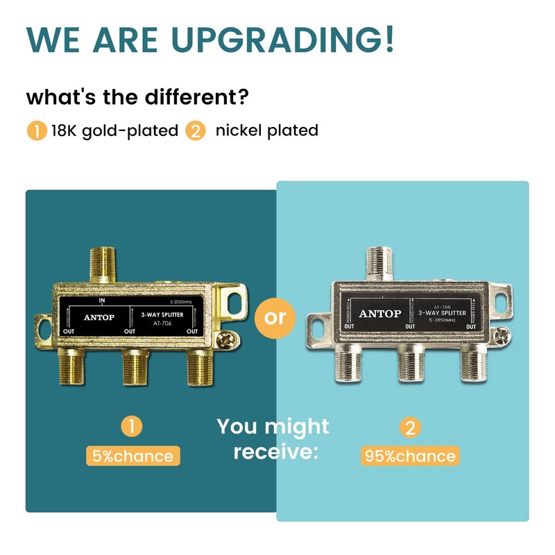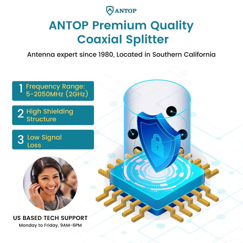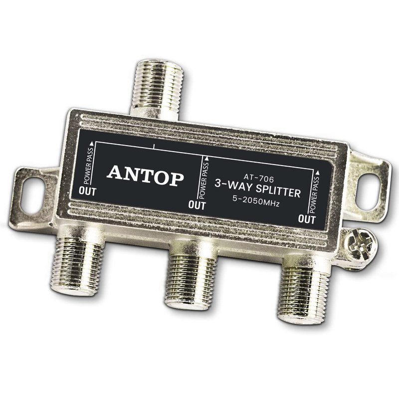 ANTOP 3-Way Coaxial Cable Splitter 2GHz- 5-2050MHz Worked with Satellite, HDTV, Antenna Signal- All Port Power DC Power Passing, Silver Plated and Corrosion Resistant