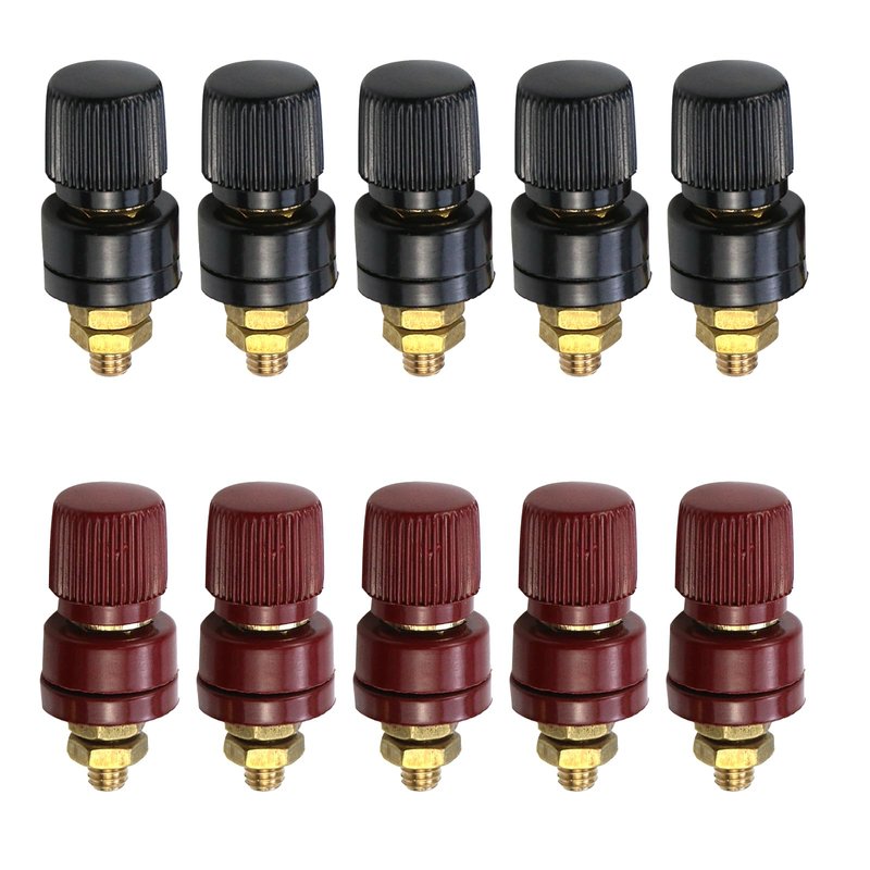 Antrader 10Pcs Copper Battery Terminal Studs M6 6mm Remote Battery Binding Post Junction Post Block Terminal Kit (Red and Black)
