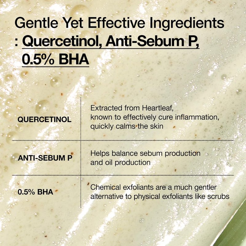 - GENTLE EXFOLIATION : Contains 3,000ppm Heartleaf powder which helps to gently clear deep within the pores, exfoliate dead skin cells and effectively clear any impurities.