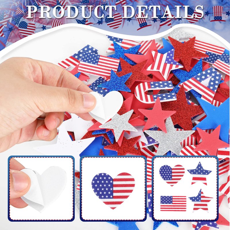 - LIGHT UP MOOD: The foam glitter stickers are perfect for decorating party, Memorial Day, Independence Day and other meaningful occasions, creating a festive atmosphere and making a deep impression.