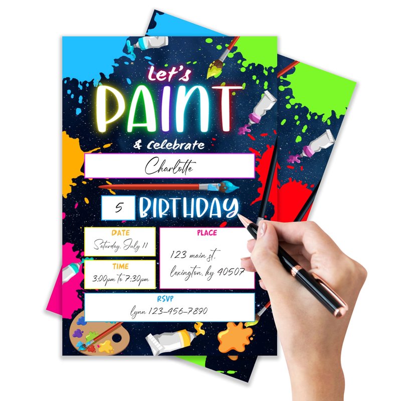 ANYEMW 4x6 Paint Birthday Invitations, Art Party Decorations, Glow Party Supplies, Art Birthday Party, Kids Birthday Invitations, 20 Cards with 20 Envelopes.(38)