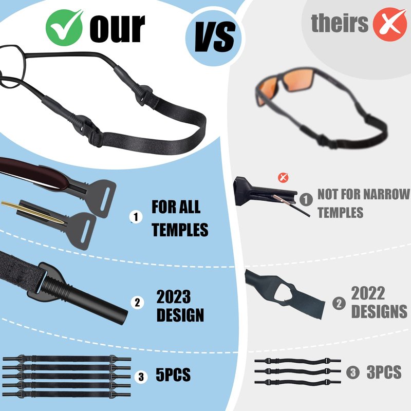 - ✅Glasses Strap Holder - 5PCS adjustable eye glasses holders around neck perfect for sports, outdoor activities, working or studying. Such as eyeglasses strap, sunglasses strap, glasses strap sports, glasses strap for men or kids glasses strap.