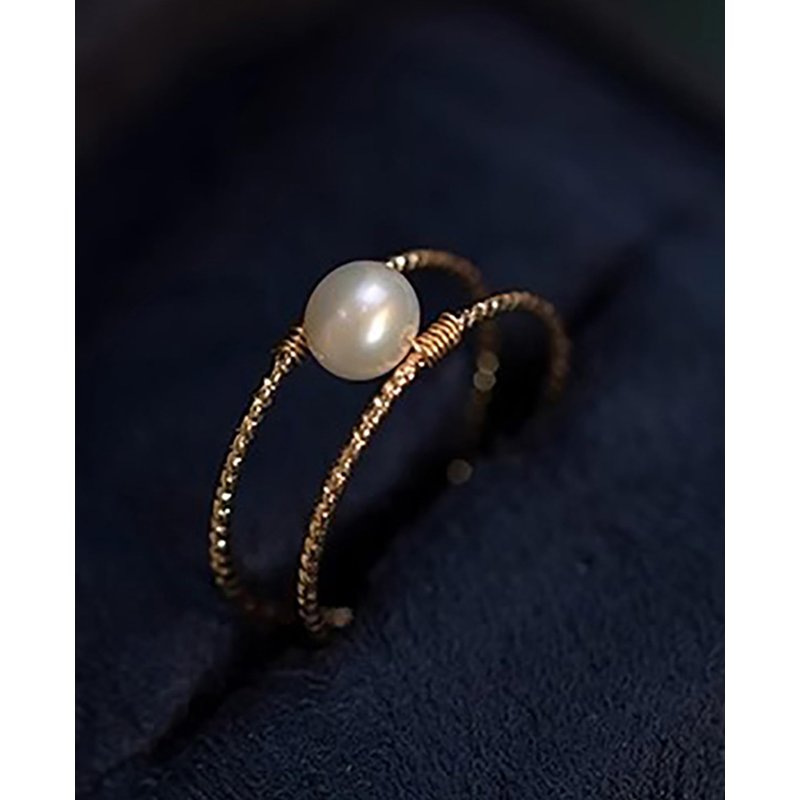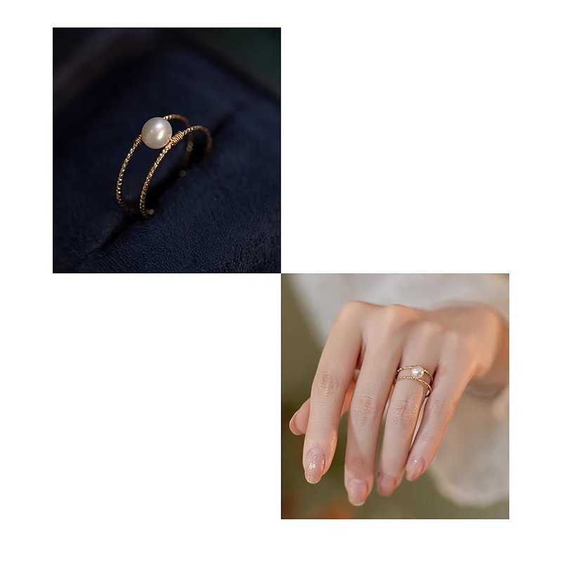 ANYILVTULI Gold Ring Open Ring for Women (pearl)