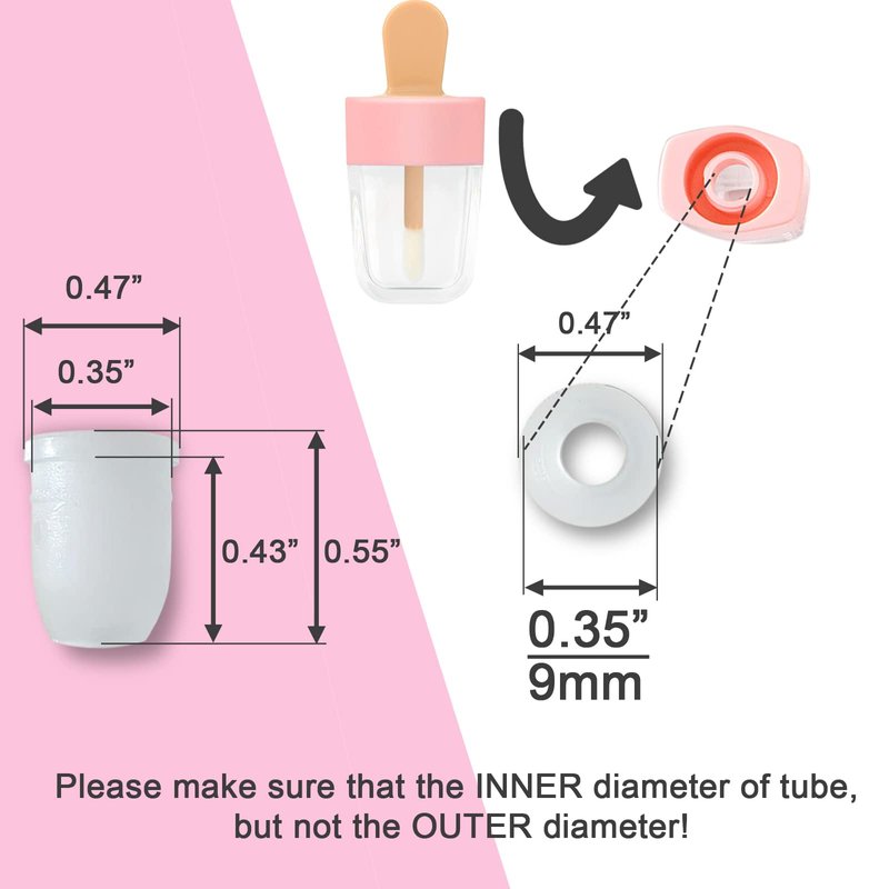 - ⭐The inner plug size is 11x14mm/0.43x0.55inch, and the insert part size is 9x12mm/0.35x0.47inch, suitable for cosmetic tubes with inner diameter of 9mm/0.35~0.36inch. Note: Please measure the tube before purchasing, do not measure the outermost size, and the size measured in the tube mouth shall prevail.