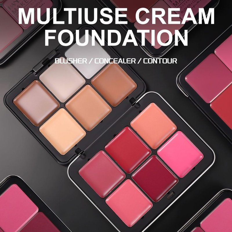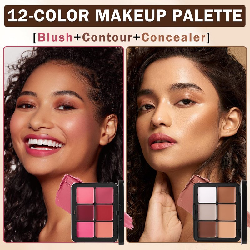 - Cream Blush and Concealer Palette: It contains 6 colors of concealer and 6 colors of blush;the blush palette has bright colors,adding rosy luster to your face;the concealer and contouring palette can cover facial blemishes,shape facial contours, and make your facial features more three-dimensional