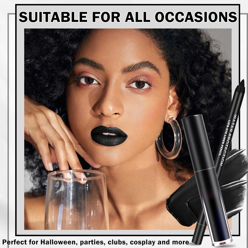 AOAZXBB Black Lipstick Black Lip Liner Set Matte Lipstick 2PCS Long Lasting Black Lip Stain and Lip Liner Set for Halloween Cosplay Goth Makeup