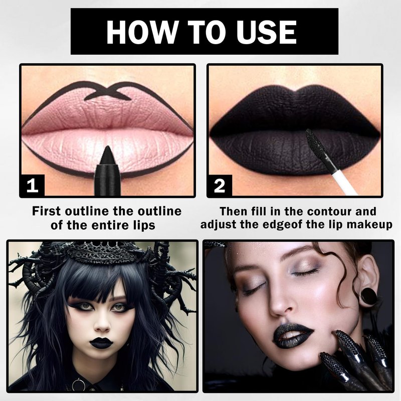 - Matte Black Lip Liner and Lipstick Set: Black liquid lipstick has a matte effect,use it with a black lip liner to create sexy,natural black lip makeup,exuding your unique charm.