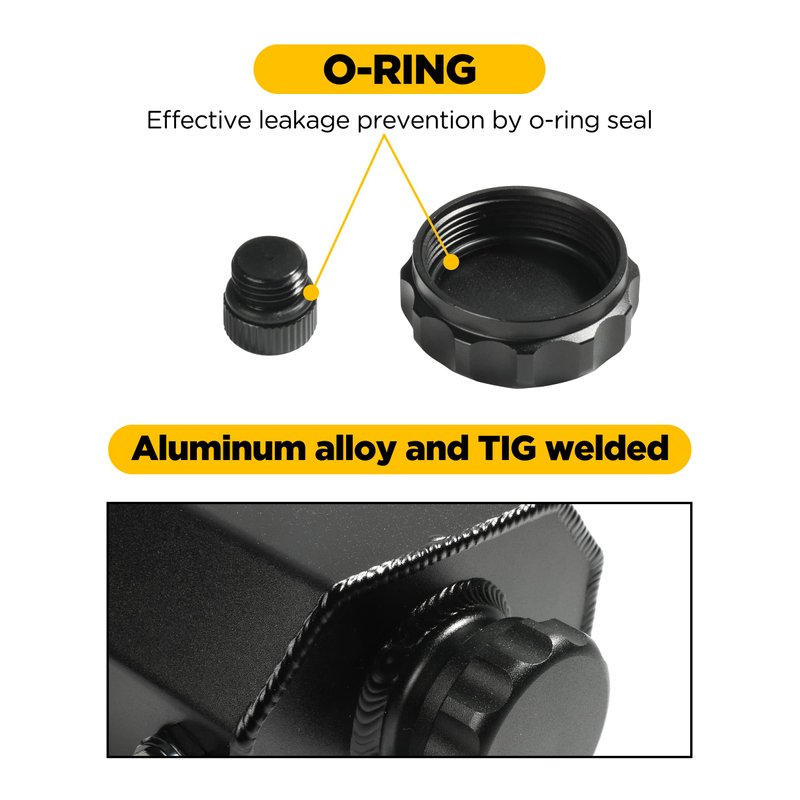 - [Durable Material]The coolant radiator tank is made of high-quality aluminum, with enhanced strength, anodized finish, and durability. It is better than plastic material. The radiator coolant overflow tank sealing cover is fully TIG welded, and the threads are equipped with O-ring seals to maintain a good closed environment and prevent coolant leakage. There is a magnetic drain plug at the bottom for easy drainage and cleaning.".