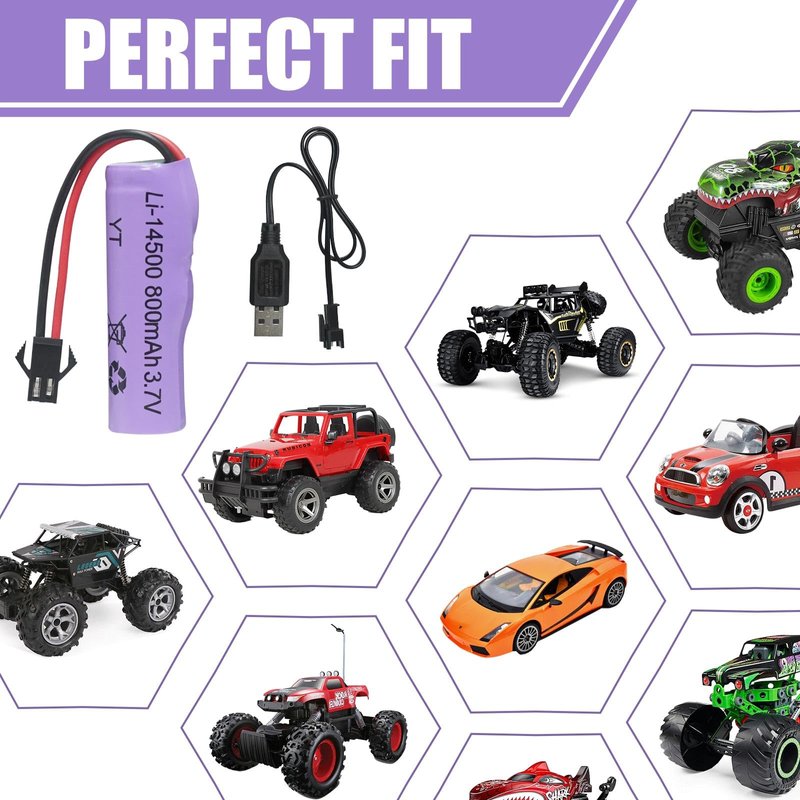 - What You Get:2 x 800mAh 3.7V Li-ion Batteries, 2 x 3.7V USB Battery Charger.SM-2P connector, 3.7v RC car lithium 800mah battery, size for 14*51 mm.