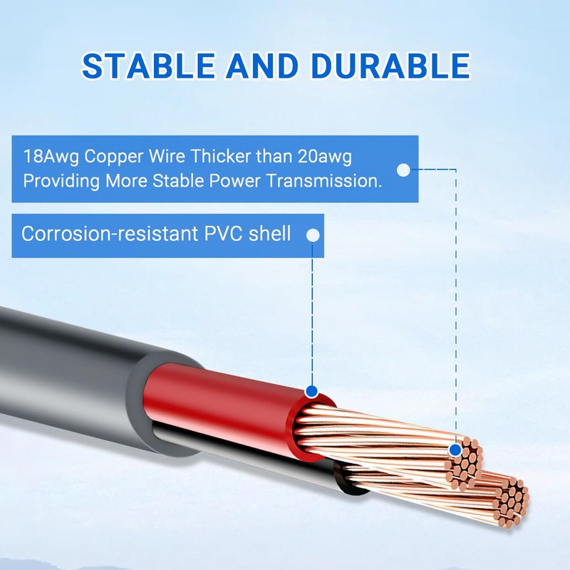 - 18 Awg Copper Cable: Which has a thicker wire diameter than 20awg starlink mini cable, providing more stable power transmission.