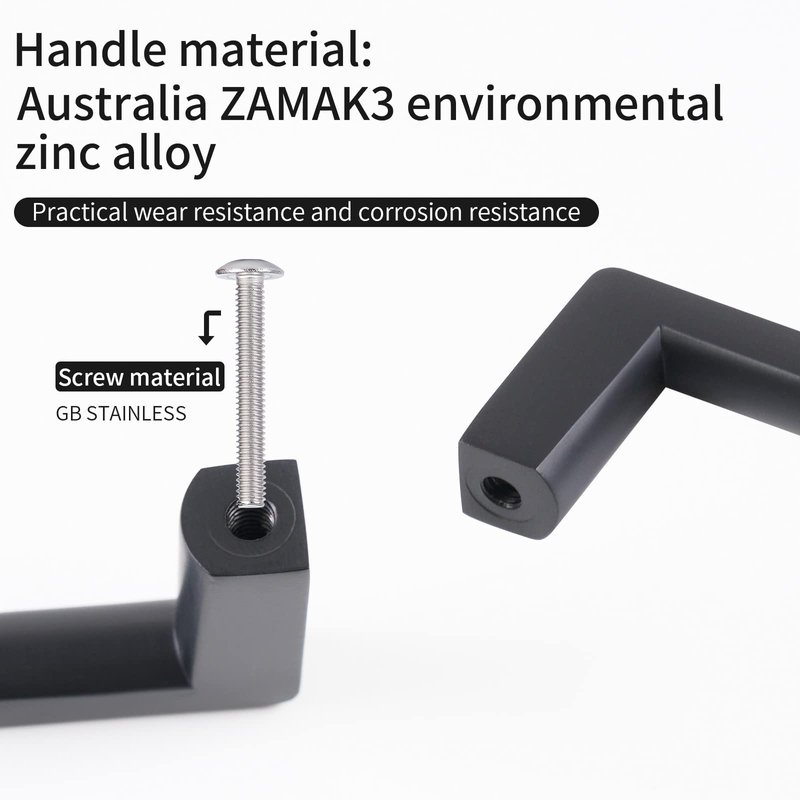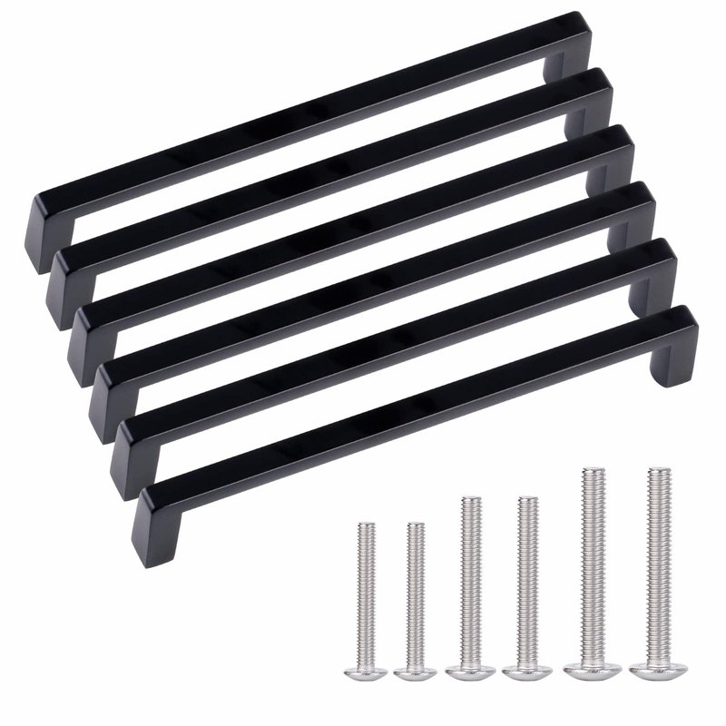 BY EMPLOYING BRAND LOVELY CABINET DOOR HANDLES FOR THE KITCHEN, YOU MAY INFUSE MORE LIFE INTO YOUR HOME. WHY CHOOSE BRAND STAINLESS STEEL CABINET PULLS? IDEAL HOME DECORATION No matter what style you want, the stainless steel cabinet door pulls are suitable for use with a variety of different types of furniture décor. QUICK & EASY INSTALLATION Everything you need for installation is included, so all you have to do is attach the knobs to your cabinets with the two pairs of screws included. WIDELY APPLICABLE Kitchen, bathroom, office, living room and other areas. Everyone who has tried them so far has raved about them, and we are confident that you will enjoy them as well! INSTALLATION STEPS 1. Use a 4mm drill bit to drill the screw holes in the board 2. Choose a suitable screw, the screws go through the board and align the screw holes of the cabinet doorknobs. 3. Use a screwdriver to tighten the screws on the back of the board 4. Cabinet knobs installed. SPECIFICATION Material: Environmentally friendly zinc alloy Color Option: Matt Black Size: 4.5 inch Hole Size:4 inchcenter hole spacing Screw length: 20MM,25MM,30MM. PACKAGE INCLUDES 6 x Chrome finishcabinet handles 36x screws 12pcs X20mm,12pcs X25mm,12pcs X30mm WARM TIPS: 1) If you have cabinet doors or drawer boards that are different in thickness, please measure them before purchase. 2) Due to variations in lighting and screen settings, the actual color of the item may appear somewhat different from the photographs. Your satisfaction is our number one priority. Please do not hesitate to get in touch with us if you have any questions. We will respond to your message within one business day.