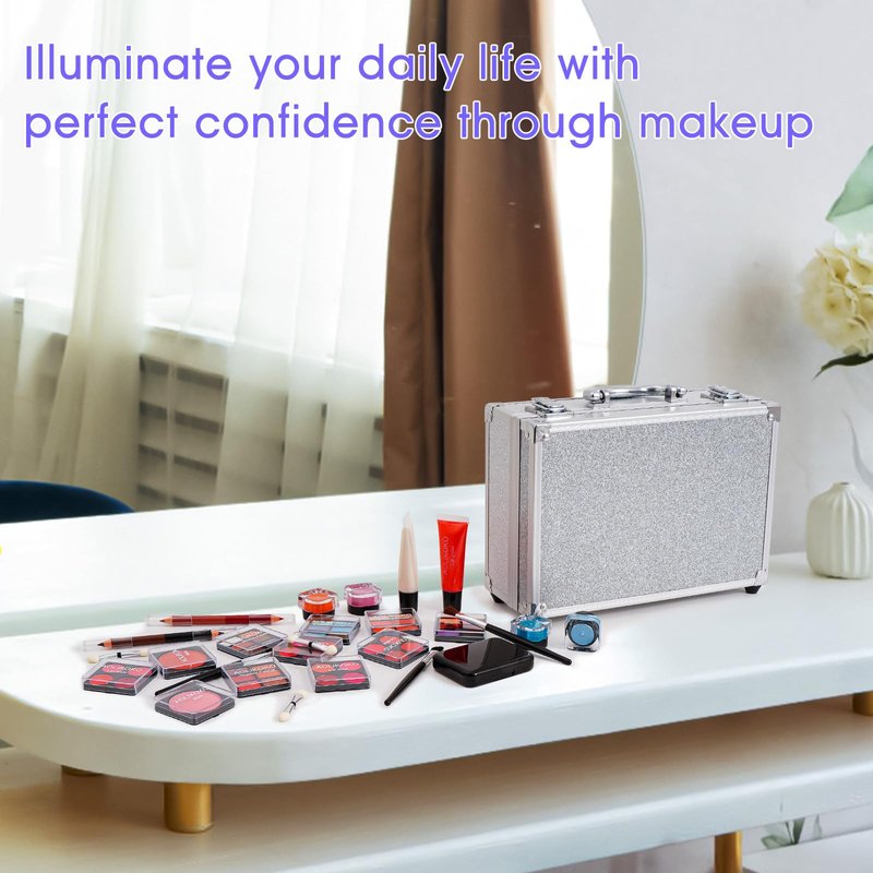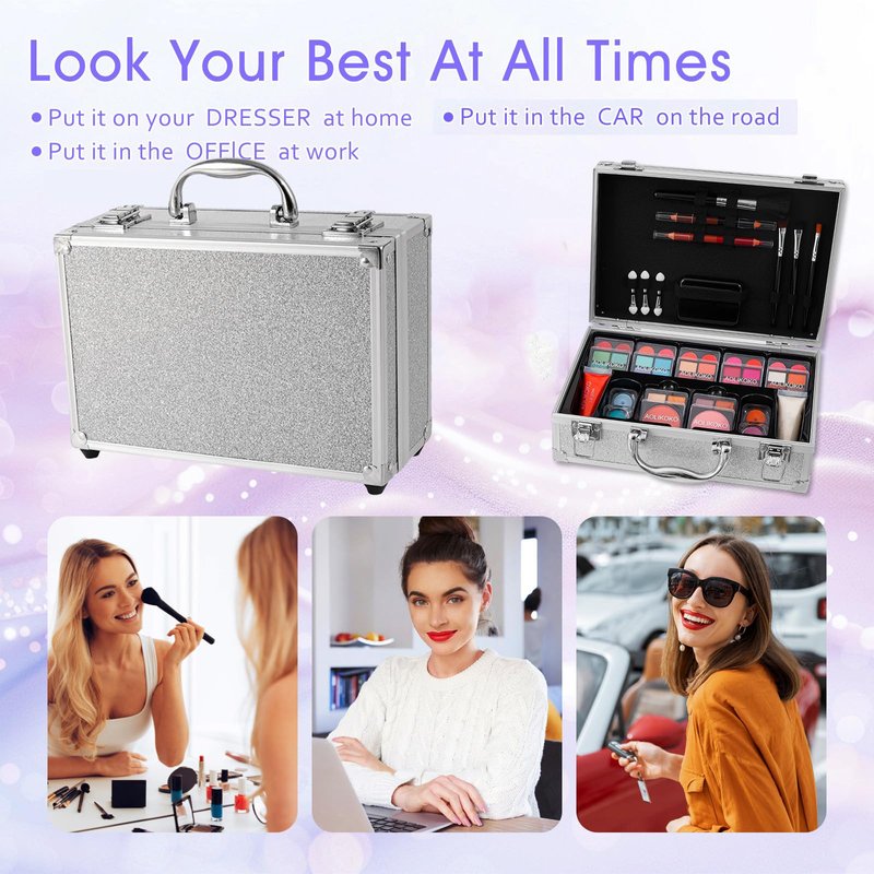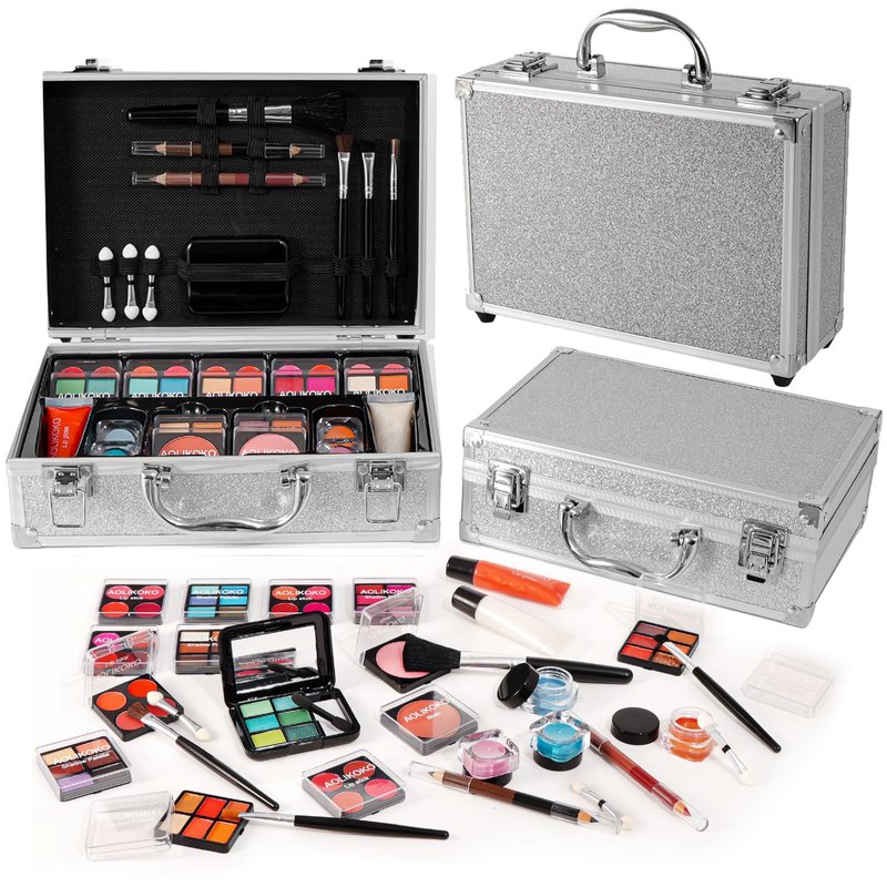 AOLIKOKO Makeup Kit for Teenager & Women Full Kit, All- In- One Makeup Set With The Cosmetic Train Case, Professional Makeup Kit, Makeup Gift Set for Women Girls(silver)