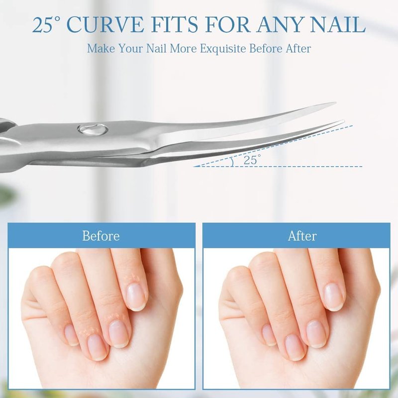 - 【Sharp and Safe】 The blades of cuticle scissors are sharp and curved to safely trim dead skin around nails and precisely cut nails, cuticles, beards or any of the tinniest hairs.