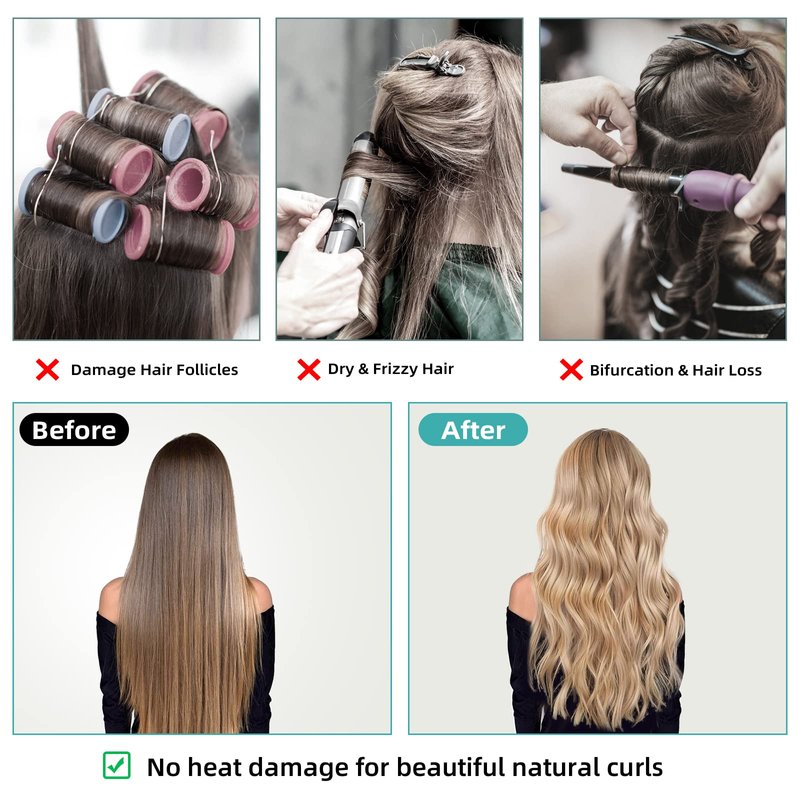 - 【Hair Curler】 No need to heat your hair, this perfect curling iron replaces traditional hot curling irons and other harsh curling irons to achieve heat-free curls and avoid heat damage to your hair. Say goodbye to breakage and split ends and say hello to healthy hair!