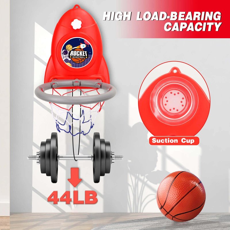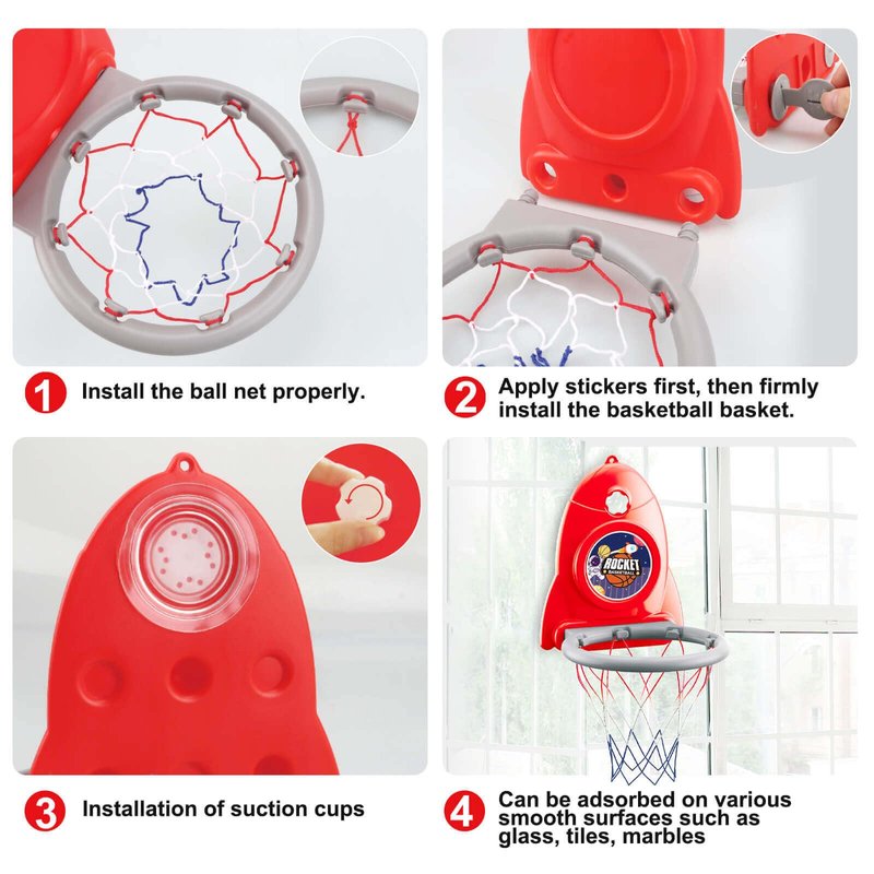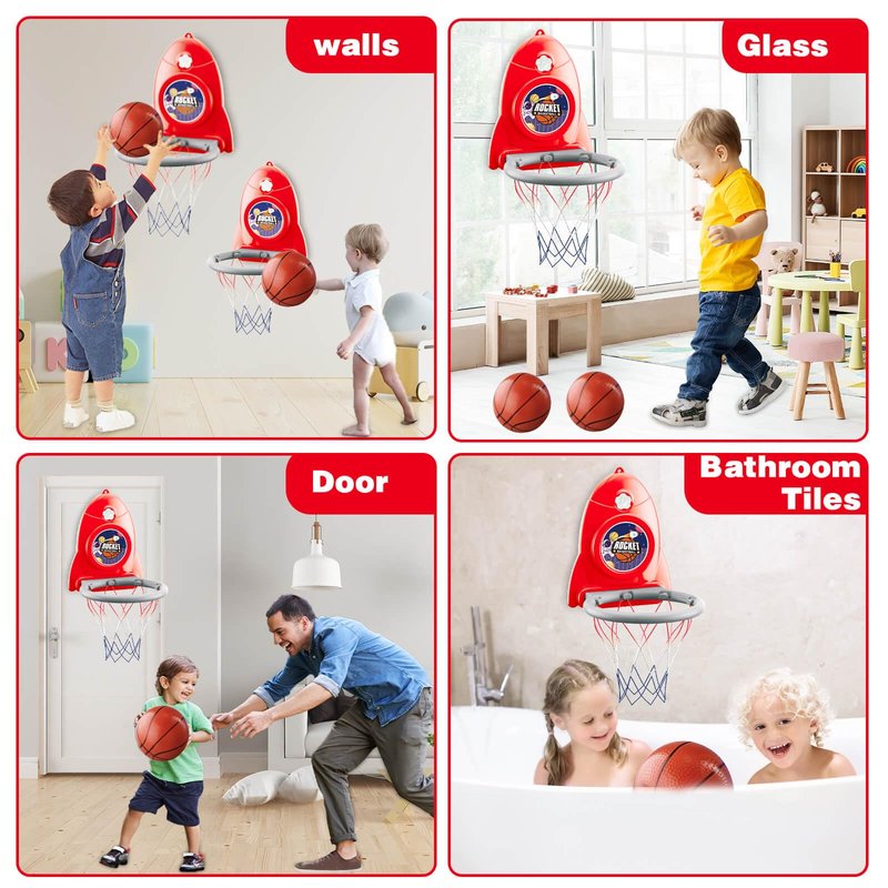 - Mini Indoor Basketball Hoop: Turn playtime into a space adventure with our rocket head design basketball hoop. Includes 1 board, 2 mini basketballs, 1 air pump, and strong suction cups for secure attachment. Ideal for indoor play and sports interest