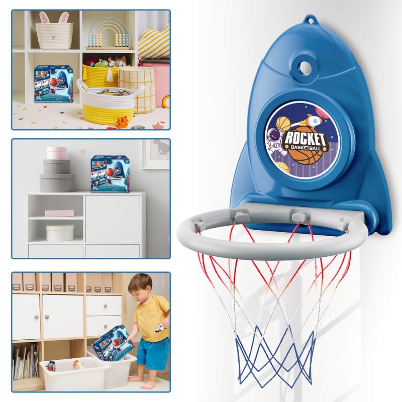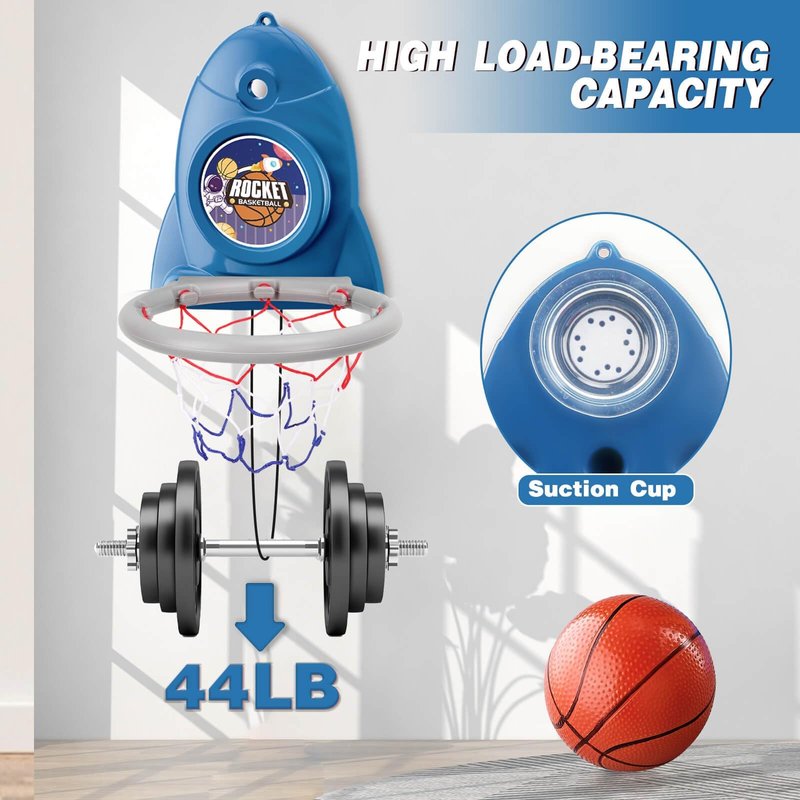 - Mini Indoor Basketball Hoop: Turn playtime into a space adventure with our rocket head design basketball hoop. Includes 1 board, 2 mini basketballs, 1 air pump, and strong suction cups for secure attachment. Ideal for indoor play and sports interest
