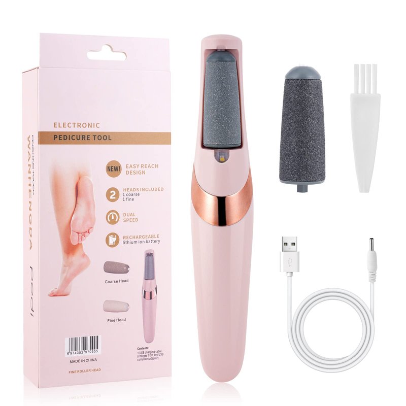 【Pedicure Set】Comes with 1 Electric Foot Callus Remover, 2 Different Replacement Roller Heads, USB Charging Cable and 1 Cleaning Brush to help you create beautiful, elegant and sexy feet.