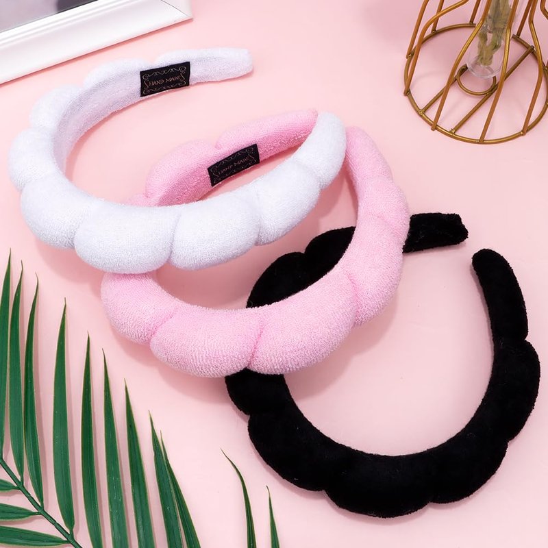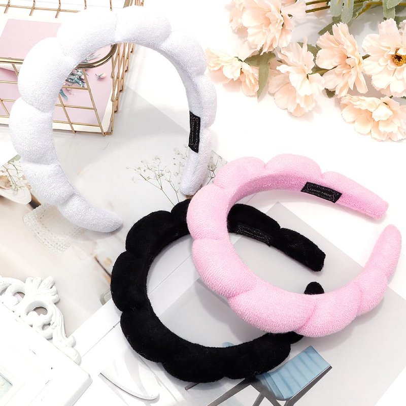 AOPRIE SPA Headbands for Washing Face Makeup Headbands with Bow Hair Band Women Facial Head Band Wrist Towel Wraps For Shower Face Mask Black Pink White, 3 Pack