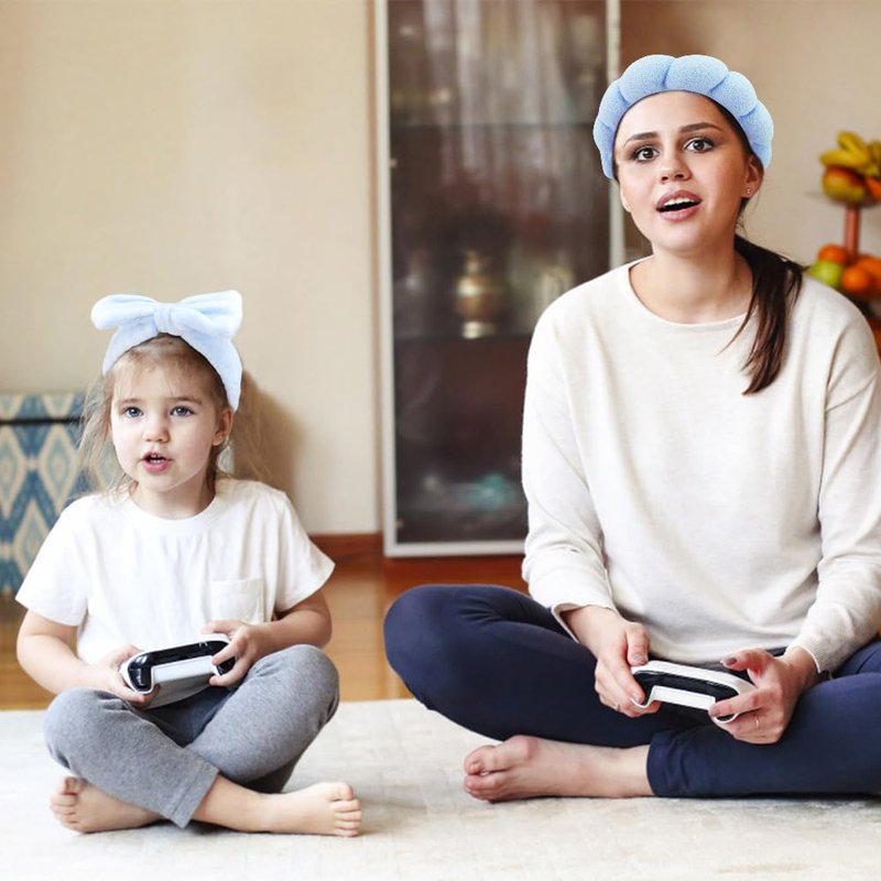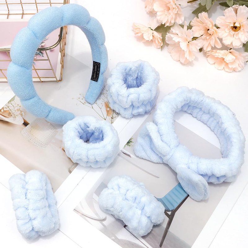 AOPRIE SPA Headbands for Washing Face Makeup Headbands with Bow Hair Band Women Facial Head Band Wrist Towel Wraps For Shower Face Mask Blue, 6 Pack
